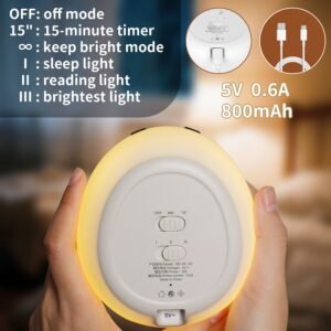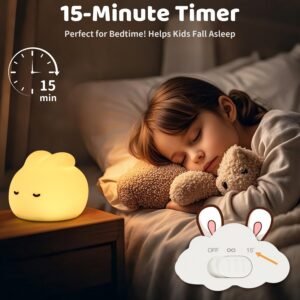 - 🐰【3-Level Dimming + 15 min Timer】Gently tap the bunny’s head to turn on/off the soothing yellow glow, then use the dedicated bottom button to cycle through Low (sleep), Medium (night care), and High (reading) brightness. The energy-saving 15-minute auto-off prevents all-night operation—perfect for sleep training or midnight feedings.