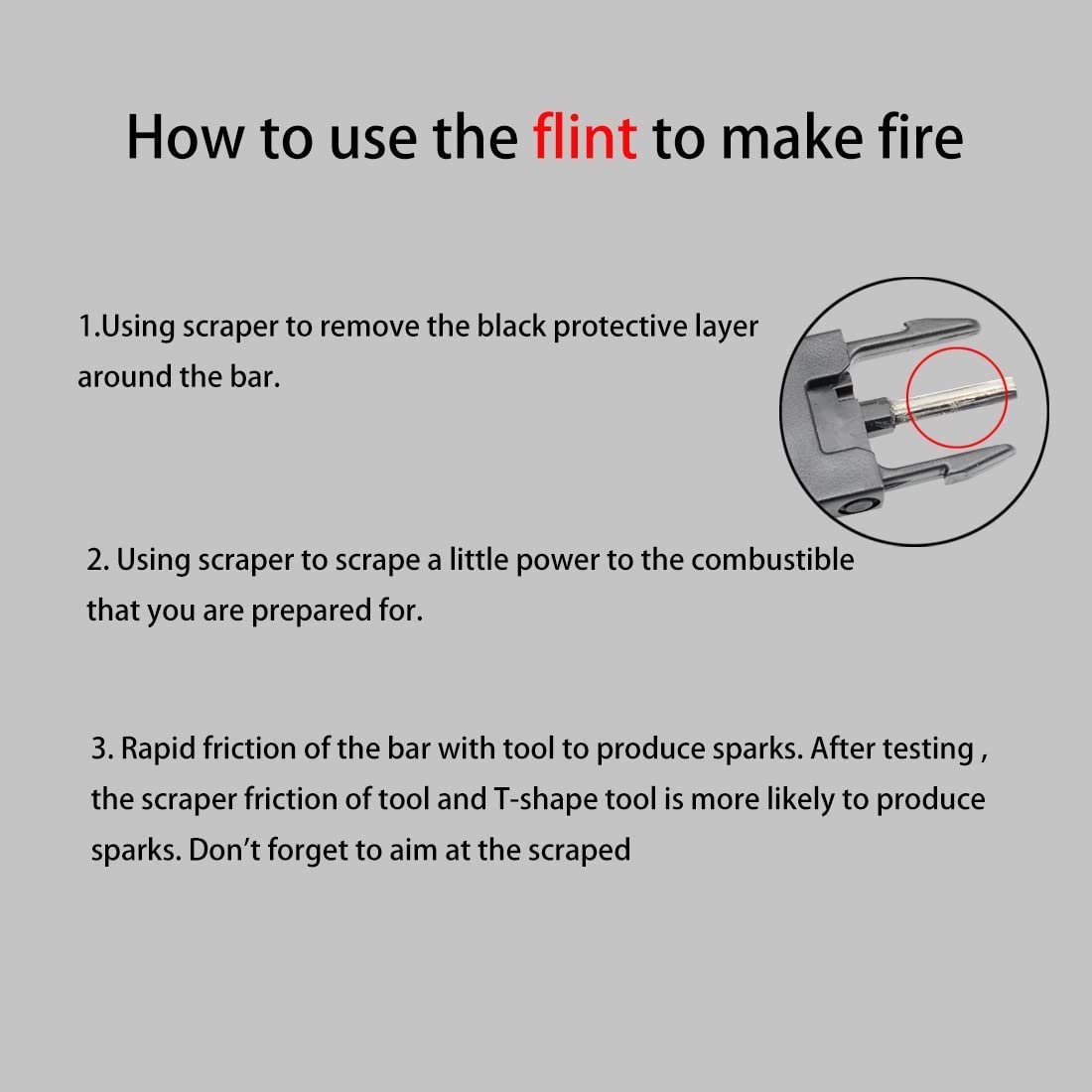 | Material | Plastic/nylon/metal/Fe-Cerium Alloy (plastic for the buckle; nylon for the rope; metal for the small tools; Fe-Cerium Alloy for the internal rod) |